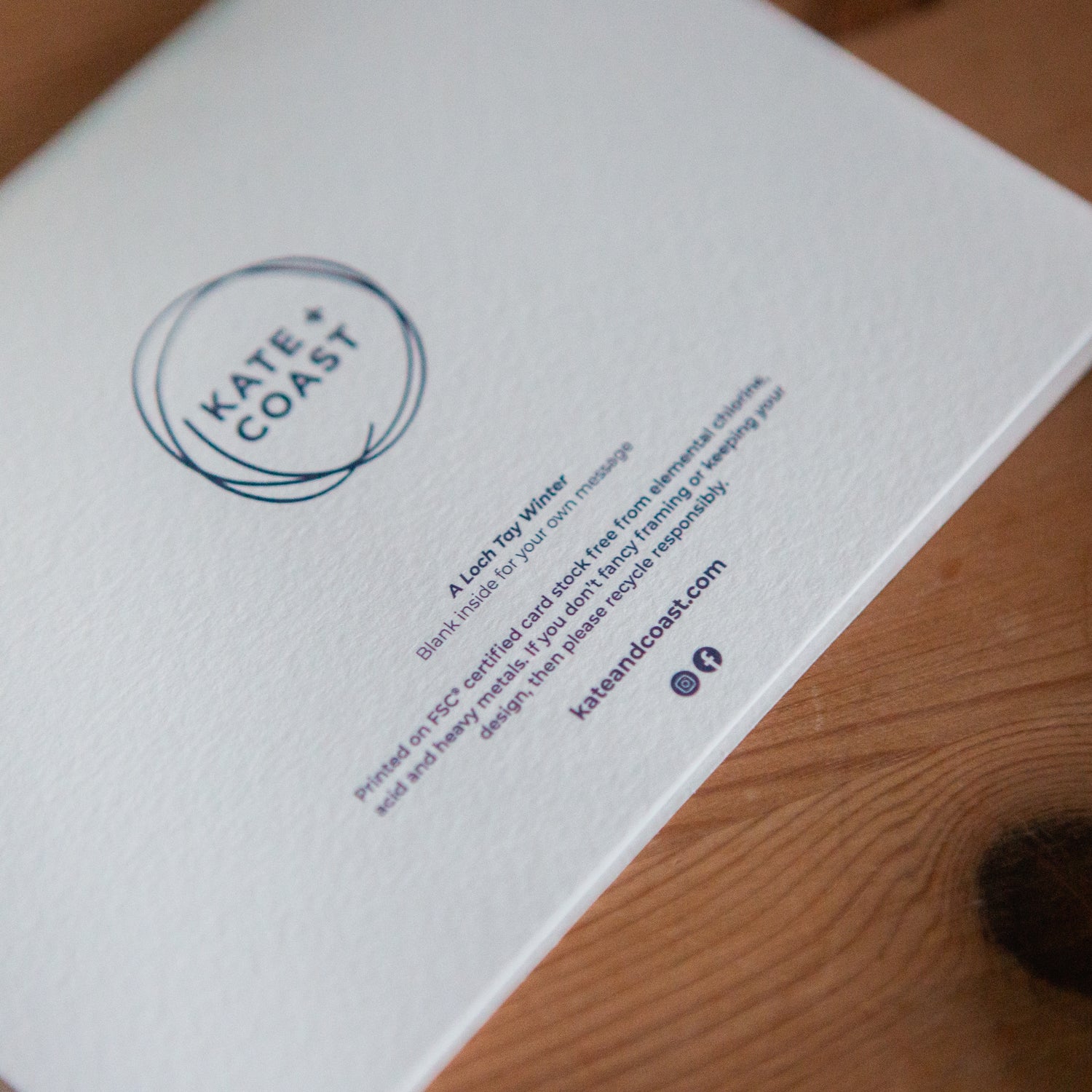 Inspired by a cosy cabin overlooking Loch Tay and Ben Lawers, this card captures the dream Scottish Christmas, complete with a smoking chimney and deer. Printed on beautifully textured 250gsm card and complete with a lightly speckled Kraft brown envelope.